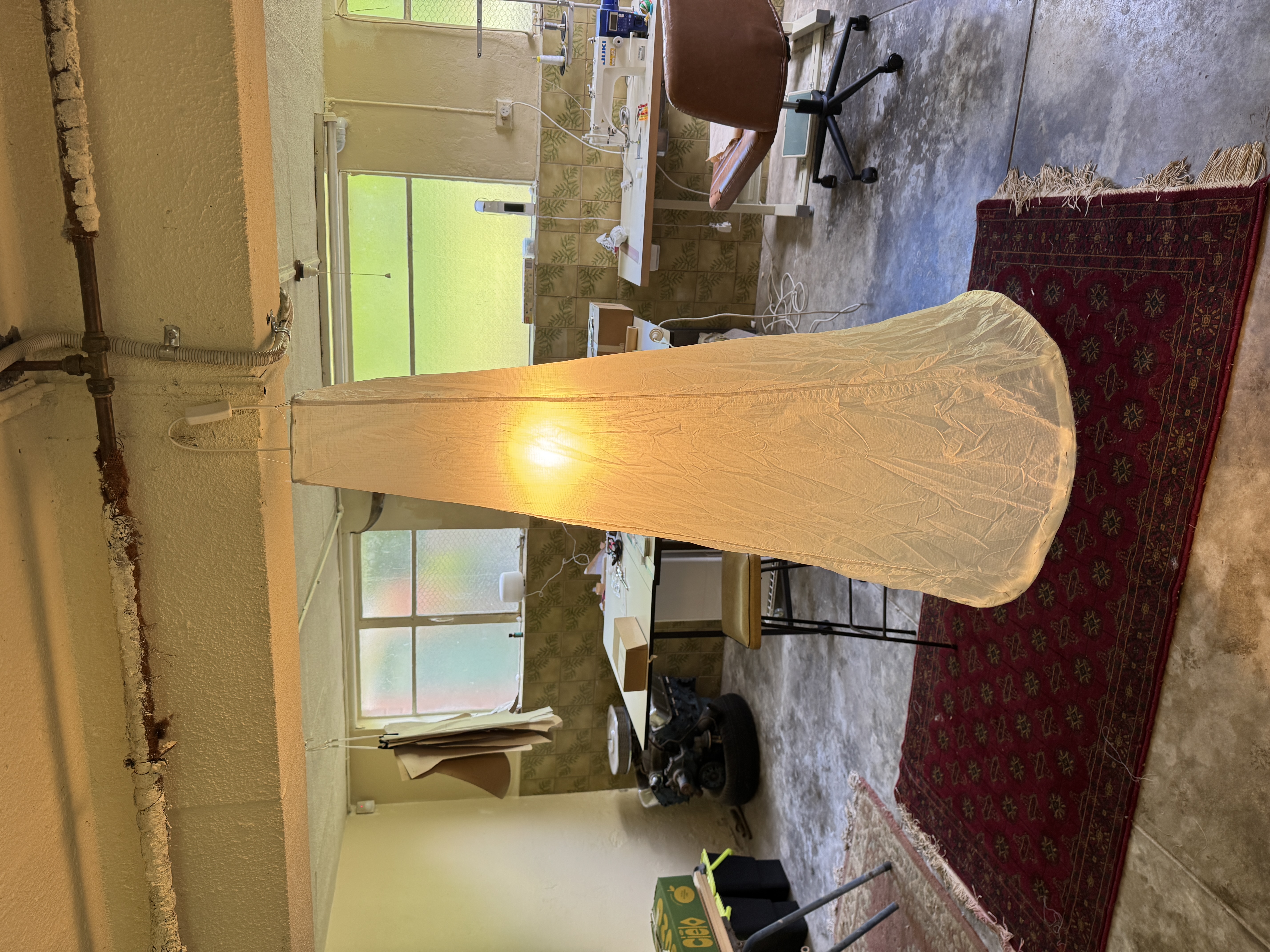 This project marked one of my first engagements with off-body design, shifting my practice from the scale of the garment to the scale of space. Rather than responding to the human form, the lampshades were conceived in direct relation to interior and exterior environments, exploring how material behaves when suspended, expanded, and activated by light. This transition allowed for a deeper investigation into space, volume, and materiality, positioning textile not as surface but as architectural presence.