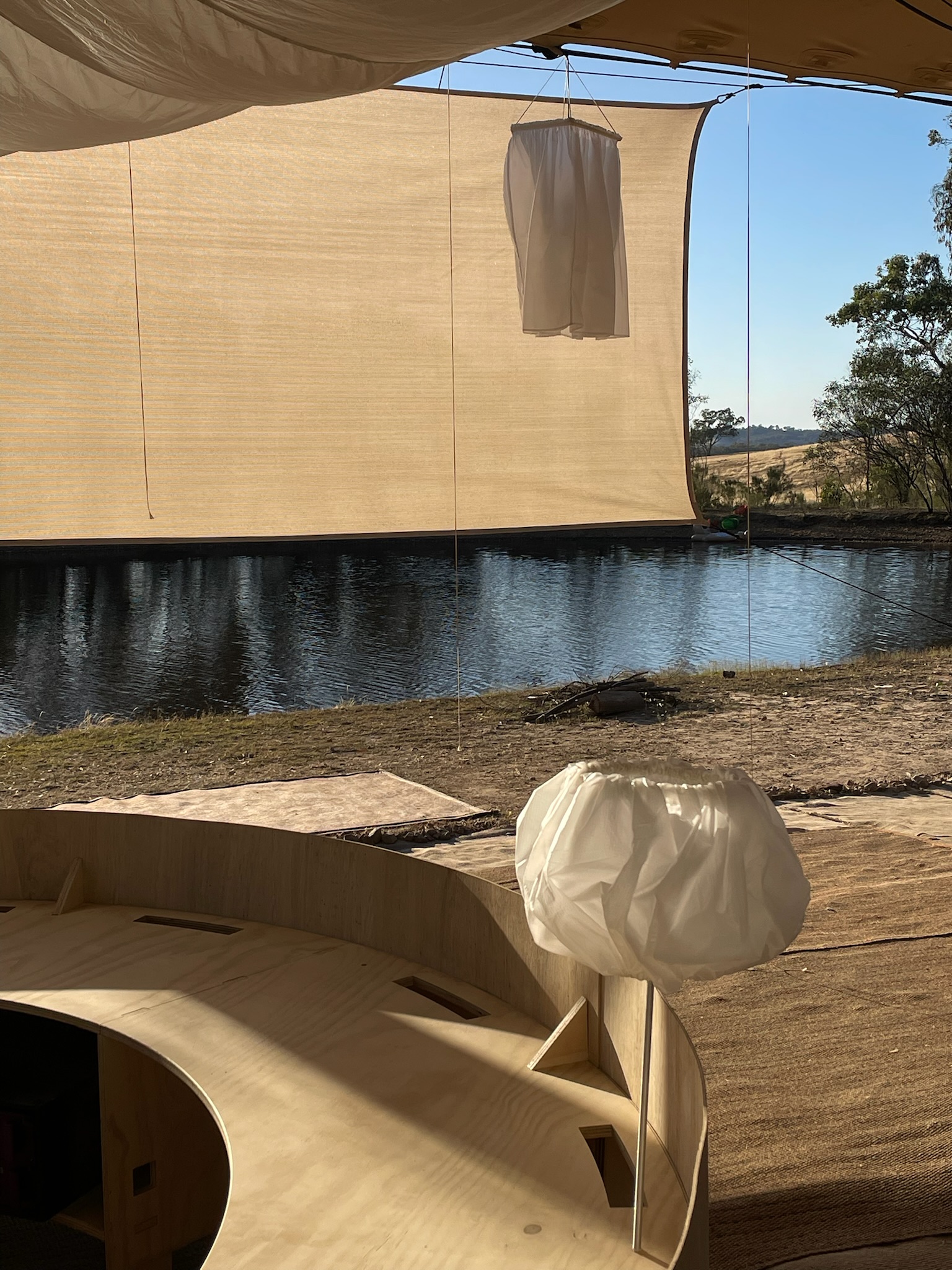 The pavilion was developed as part of UNSEND Festival 2025/2026 in Tallarook, VIC, with a strong emphasis on material reuse, adaptability, and site-responsive design. My contribution focused on the research, design, and development of three distinct lampshade systems intended for both interior and exterior use, functioning as atmospheric and spatial elements rather than purely utilitarian lighting.